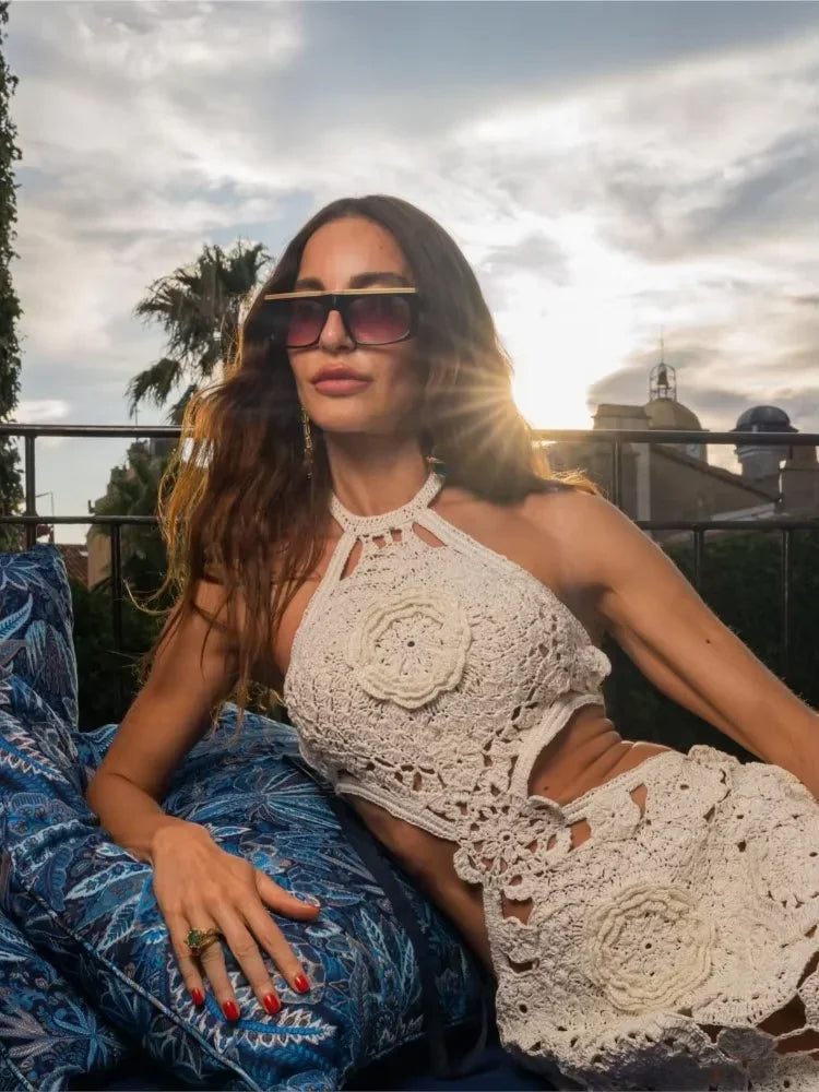 Specially made crochet two-piece dress set photoshoots, evening dinner, beach holidays.